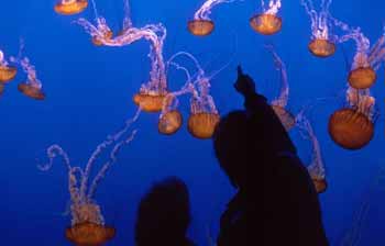 Watch as the sea nettles' long tentacles move smoothly through the water.